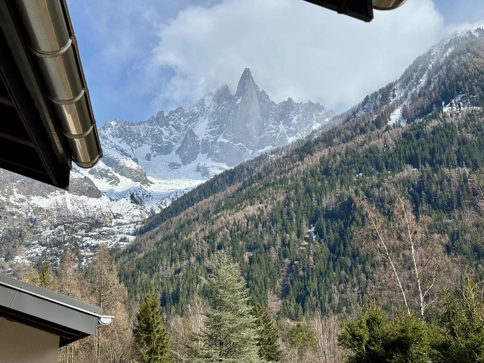 APPARTEMENT ROUGE, CHAMONIX CENTRE - Situé dans une petite copropriété au centre de Chamonix, ce T4 triplex bénéficie d'une vue ininterrompue sur l'aiguille du Midi et toute la chaîne du Mont-Blanc: entrée, deux chambres...