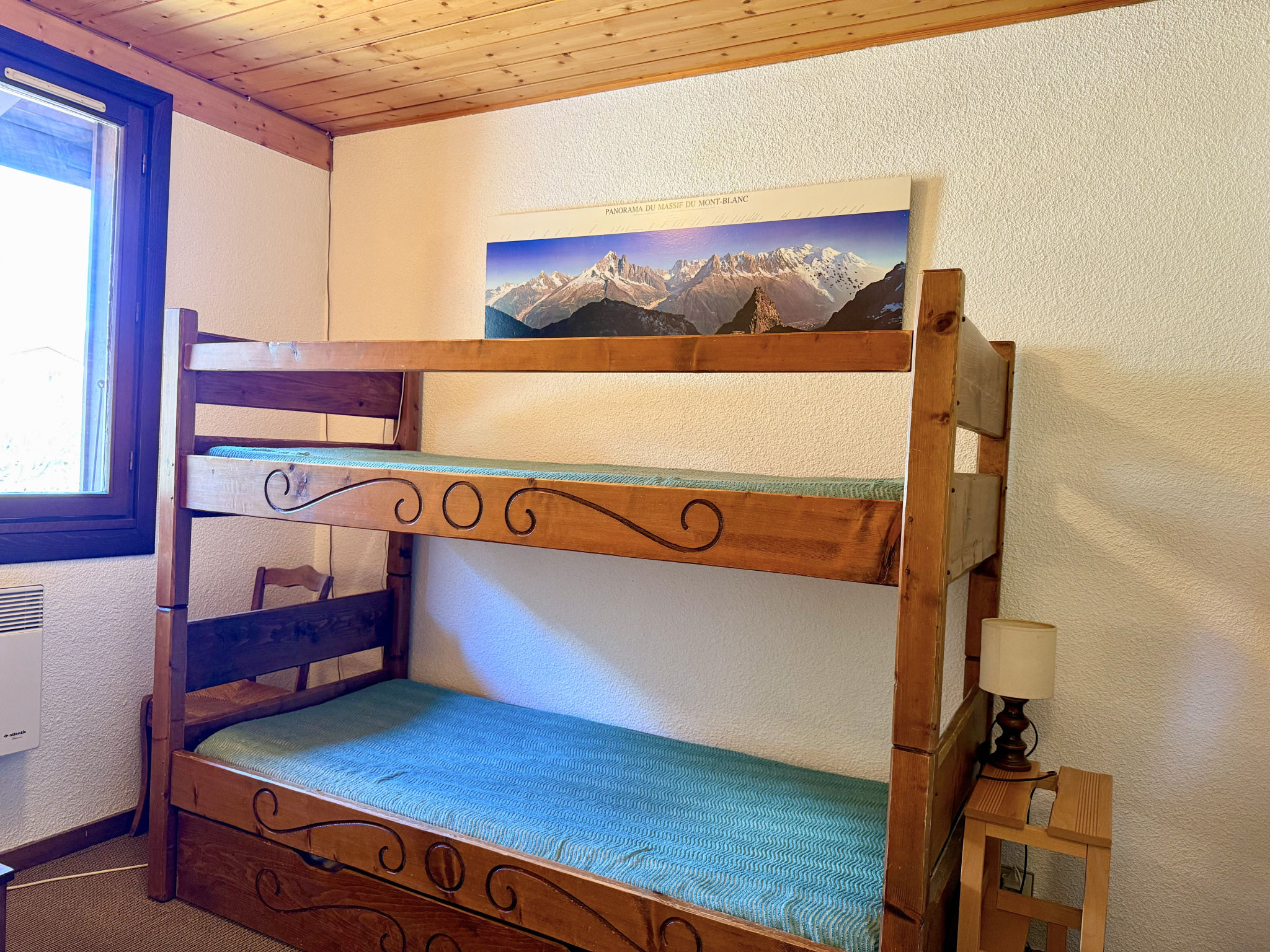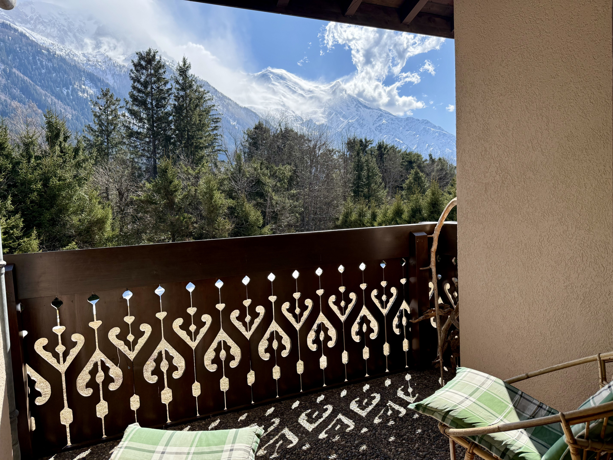 APPARTEMENT ROUGE, CHAMONIX CENTRE - Situé dans une petite copropriété au centre de Chamonix, ce T4 triplex bénéficie d'une vue ininterrompue sur l'aiguille du Midi et toute la chaîne du Mont-Blanc: entrée, deux chambres...
