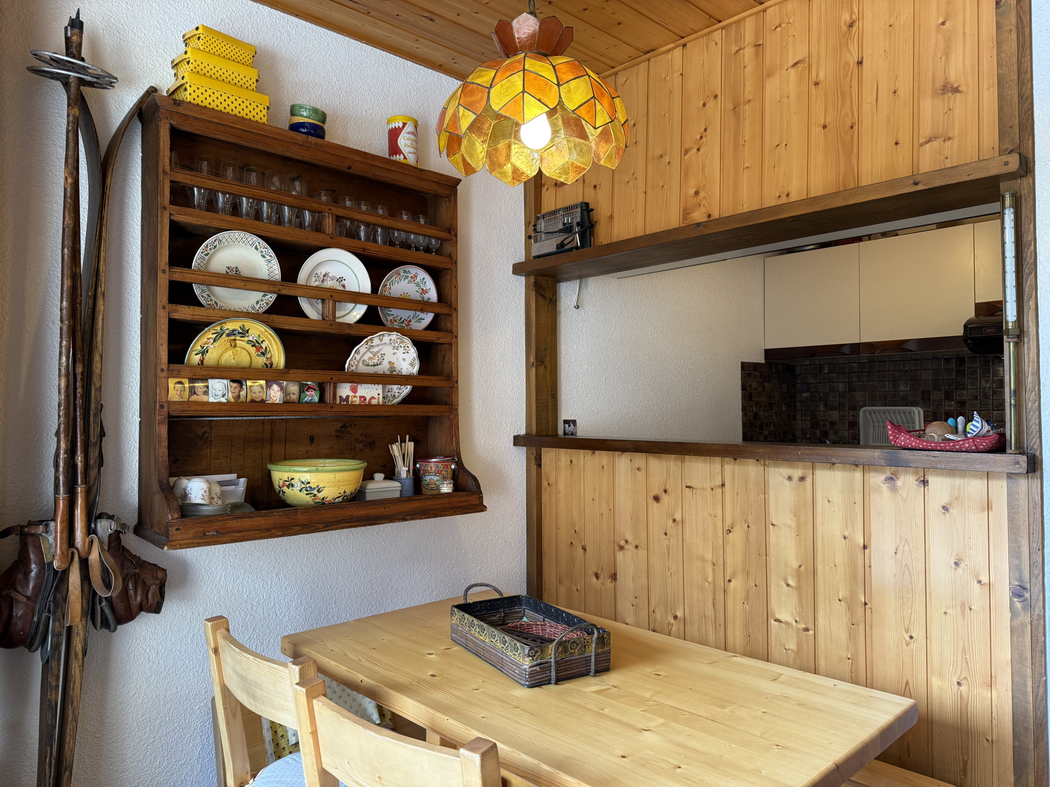 APPARTEMENT T2 MARGUERITE, CHAMONIX LES PRAZ - Situé dans lle secteur ensoleillé de la plaine des Praz, cet appartement d'une superficie Loi carrez de 35,10 m2 s'organise autours d'un salon séjour avec cheminée à foyer ouvert, une kitchenette équippée semi ouverte, une beau balcon exposé sud-est bénéficiant d'une vue incroyable sur toute la chaine du Mont-Blanc; une chambre avec rangements, une salle de bain avec WC complètent le bien. Une cave et un parking souterrain privatifs, ainsi qu'un parking extérieur et un jardin de copropriété complètent le bien.