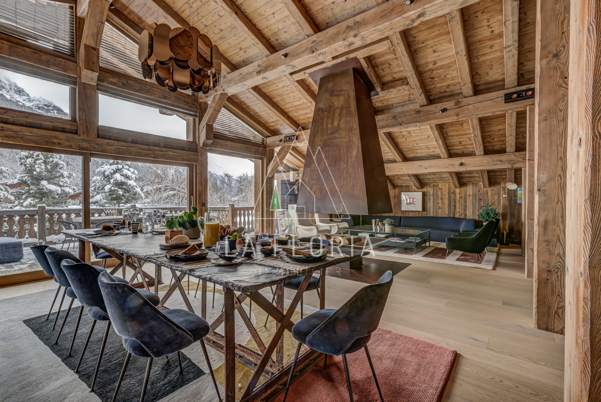 FERME PELLE, CHAMONIX CENTRE - Rénovée en 2007, cette ferme du XVIIe siècle allie charme de l’ancien et confort contemporain avec ses cinq chambres avec salle de bain + WC ensuite, une cuisine séparée toute équipée,...