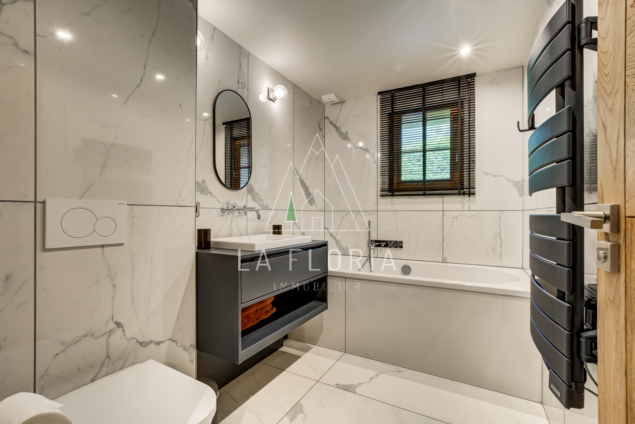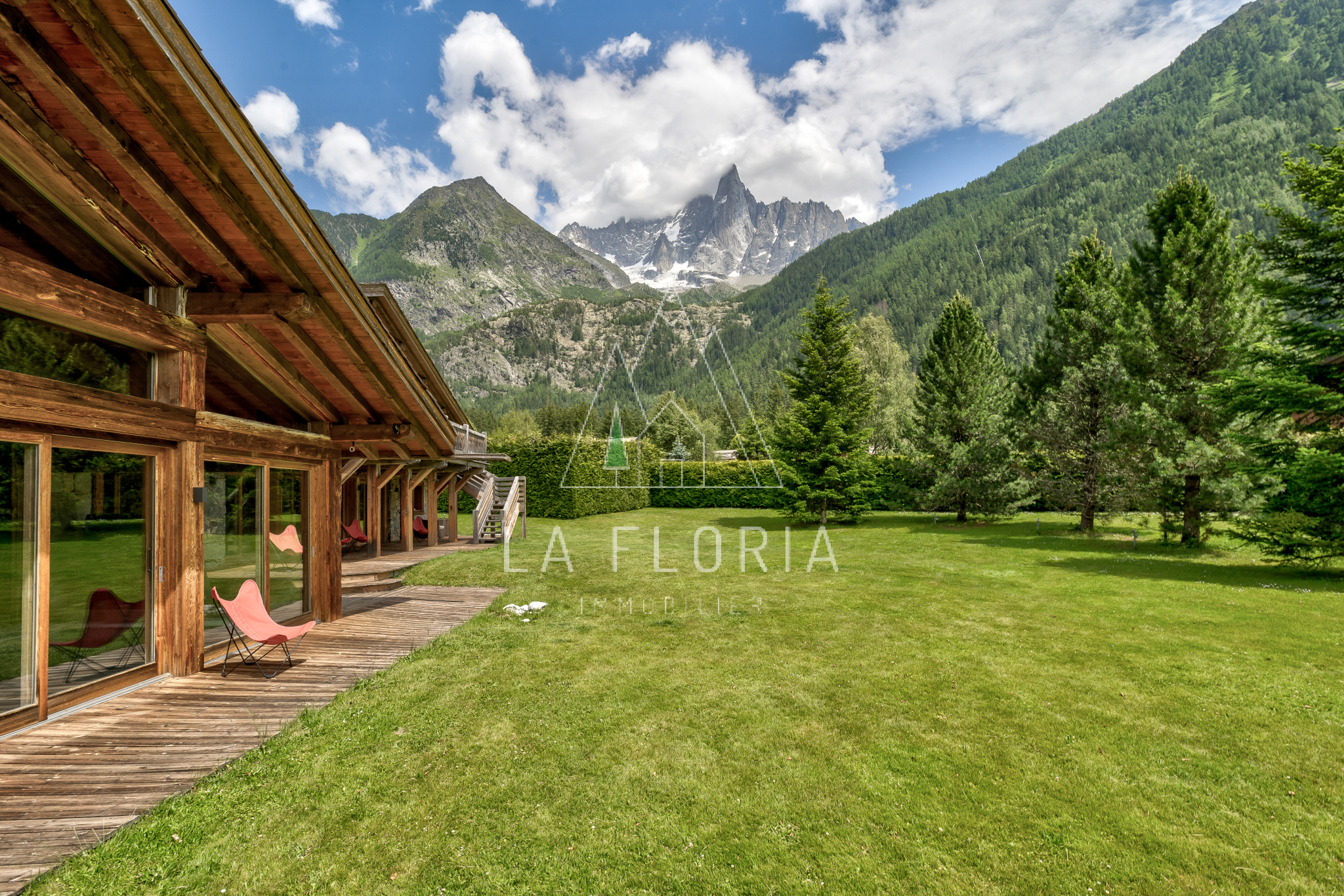 CHALET DES DRUS - Situé au cœur du quartier prisé des Bois à proximité du télésiège de la Flégère et du golf de Chamonix, cette propriété iconique de 590 m2 habitables completée par un garage de 32 m2, se trouve sur un terrain exceptionellement privé de 3834 m2. Offrant une vue panoramique à 360o sur les montagnes environnantes, ce chalet bénéficie d'un emplacement rare et privilégié. Construit en 2009 avec des finitions de très haute qualité, le chalet a été entièrement rénové en 2021. L'habitation principale, répartie sur deux étages, se compose comme suit:Premier étage: une pièce de vie impressionnante de 126 m2 avec double hauteur sous plafond type 'cathédrale' qui s'ouvre sur une terrasse de 40 m2 via de larges baies vitrées, offrant l'une des vues les plus spectaculaires sur le massif du Mont Blanc. Un espace média de 21 m2, séparé par une élégante verrière complète cet étage, ainsi que deux terrasses supplémentaires.Rez-de-chaussée : Une suite parentale spacieuse de 45 m2 avec accès direct au jardin et dressing en mezzanine. Un grand hall d'entrée avec un majestueux escalier, trois chambres de 24 m2, chacune avec sa salle de bain privative et un accès direct au jardin. Un bureau et un espace bien-être incluant une salle de sport équipée Technogym, un hammam et une pisine intérieure de 5 x 3 mètres avec système de nage à contre-courant. Ce niveau comprend également une buanderie et une entrée d'hiver avec espace ski / vélo. A un étage séparé, une grande salle de jeux pour les enfants de 41 m2. A gauche de l'entrée hiver, un Chalet 'Staff' appartement indépendant de 26 m2 pour le personnel ou une fille au pair.Un chalet 'invités' comprenant deux chambres avec salles de bains privatives, un espace de vie et un jacuzzi. La chambre en suite avec dressing de 30 m3 située à l'étage supérieur, avec ses grandes baies vitrées, offre la meilleure vue sur les Drus, montagne emblématique de Chamonix, d'où le chalet tire son nom.Le garage de 32 m2, actuellement en cours de finition, pourra accueillir deux véhicules et dispose de bornes de recharge ainsi qu'un espace de stockage.Le chalet est équipé d'un système de chauffage par pompe à chaleur / aquathermie et bénéficie d'une connexion internet haut débit.Ce chalet représente sans aucun doute l'une des plus belles résidences proposées à Chamonix.