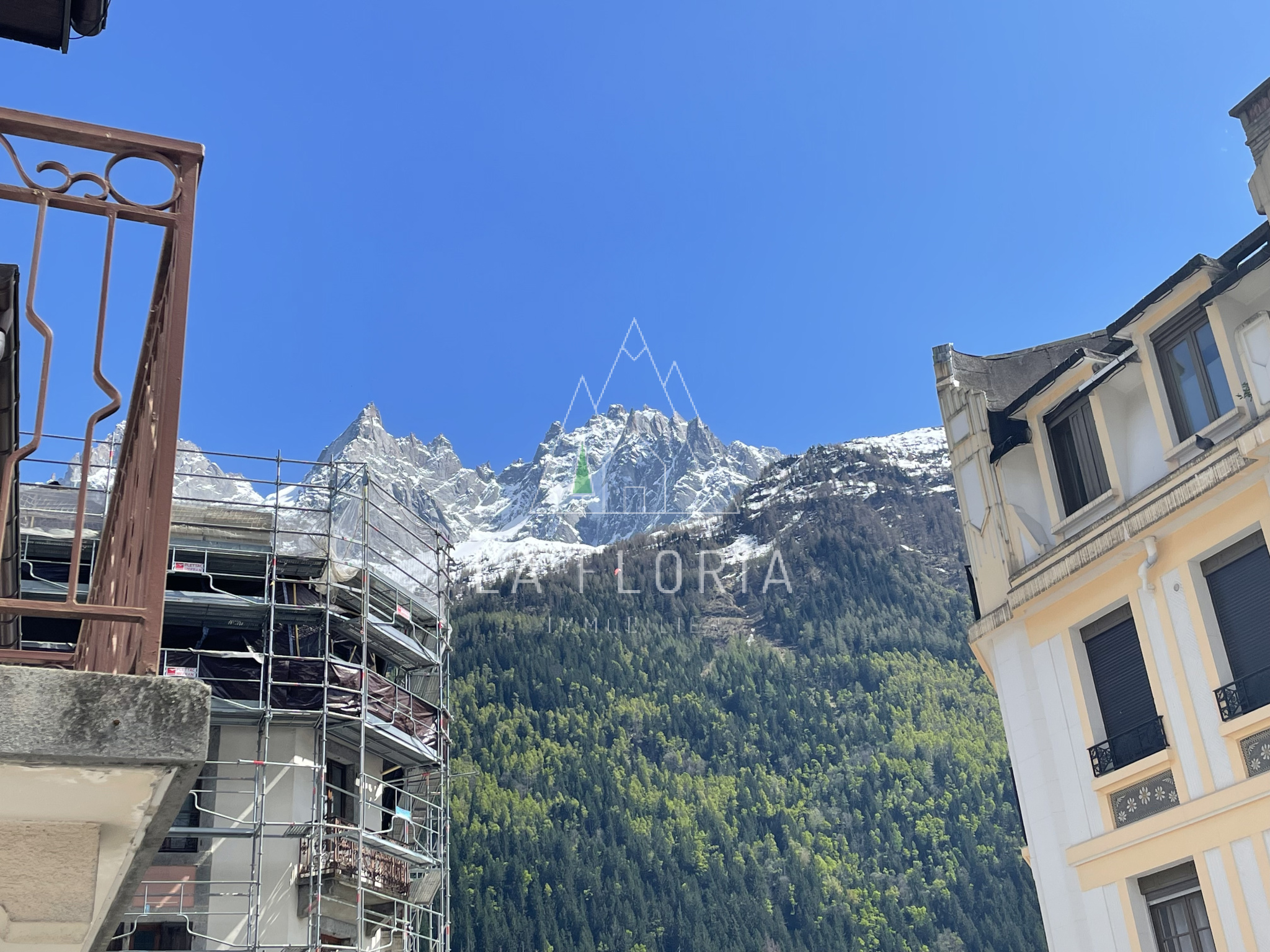 APPARTEMENT ROUGE, CHAMONIX CENTRE - Situé dans une petite copropriété au centre de Chamonix, ce T4 triplex bénéficie d'une vue ininterrompue sur l'aiguille du Midi et toute la chaîne du Mont-Blanc: entrée, deux chambres...
